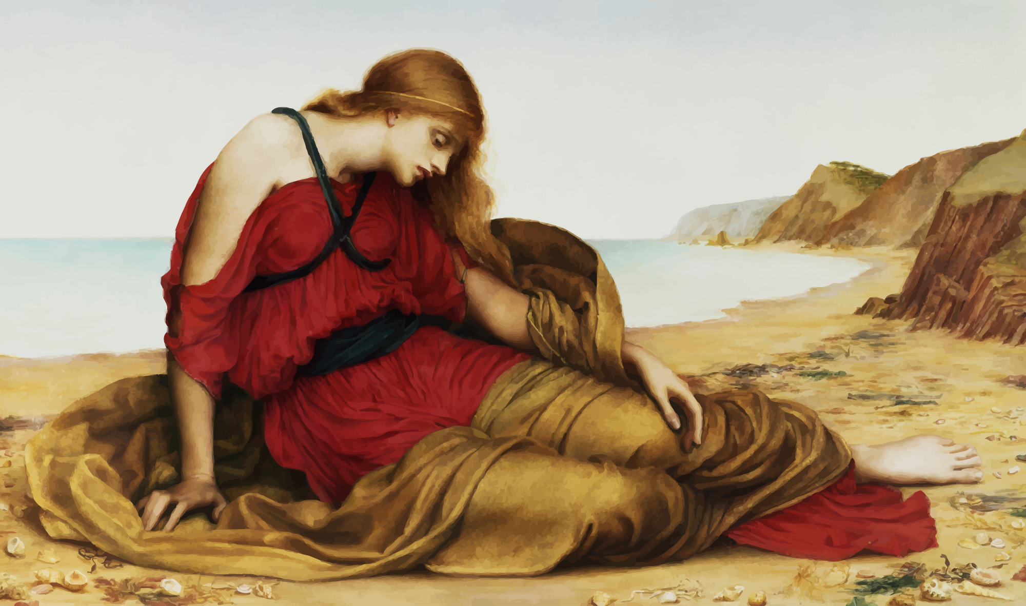 - 1877 Ancient Ariadne Art Evelyn De Morgan Female Girl Greece Greek Human Landscape Mythology Painting People Person Semi-Realistic People Source+Wikimedia Vintage Woman
