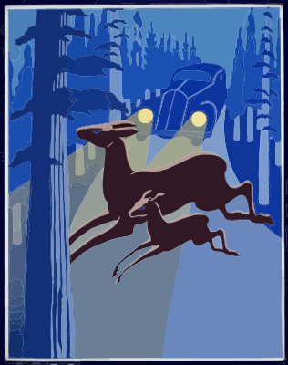 - remix+223898 America Animal Deer Government National+Park Service Poster USA United States Vintage Wildlife wild+life deer headlights driving retro vintage night