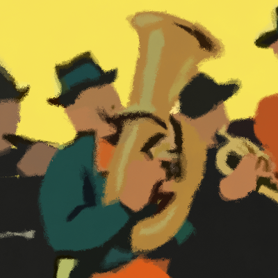 Detail of a larger print with a painted style.