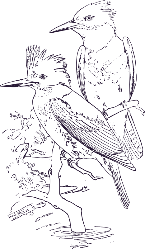 - King+Fisher bird outline drawing sketch thin+lines birds two 1909