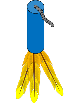 A cat toy with feathers on it, representing my cat's favorite toy. It belongs on the end of a cat fishing pole.