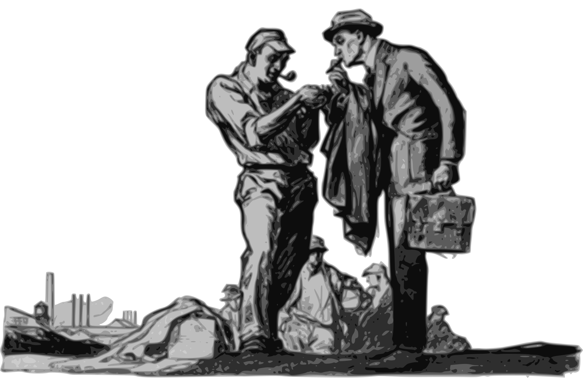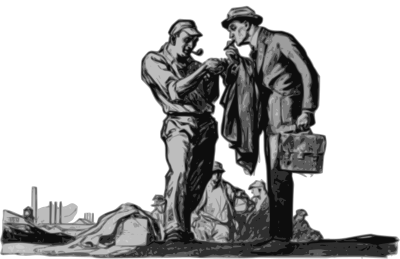 - factory worker work working smoking pipe cancerstick cigarette businessman businessperson business white+collar blue+collar suit briefcase