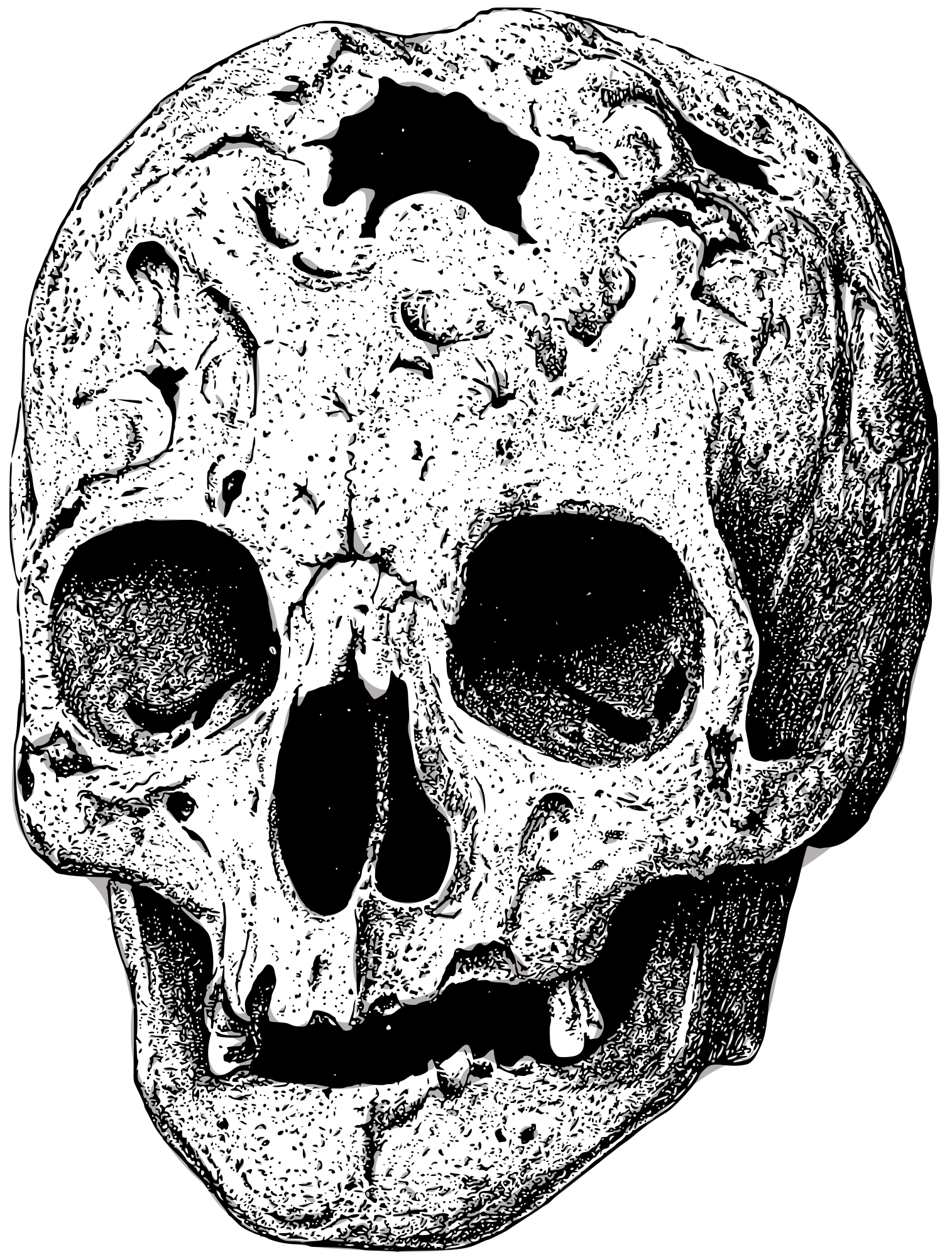 This skull has been hit on the head, extra scary!