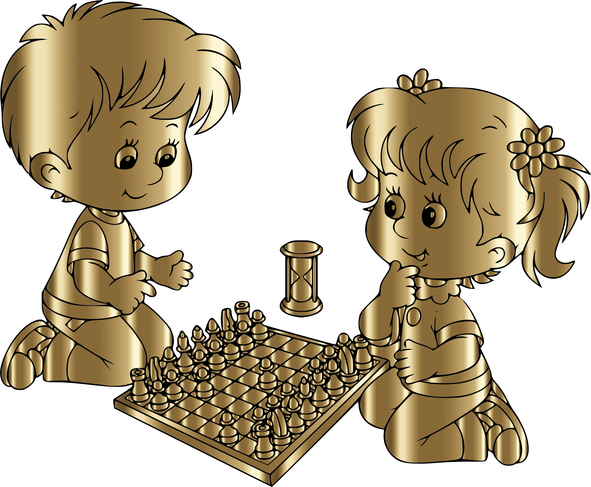 Boy And Girl Playing Chess By DG RA Gold