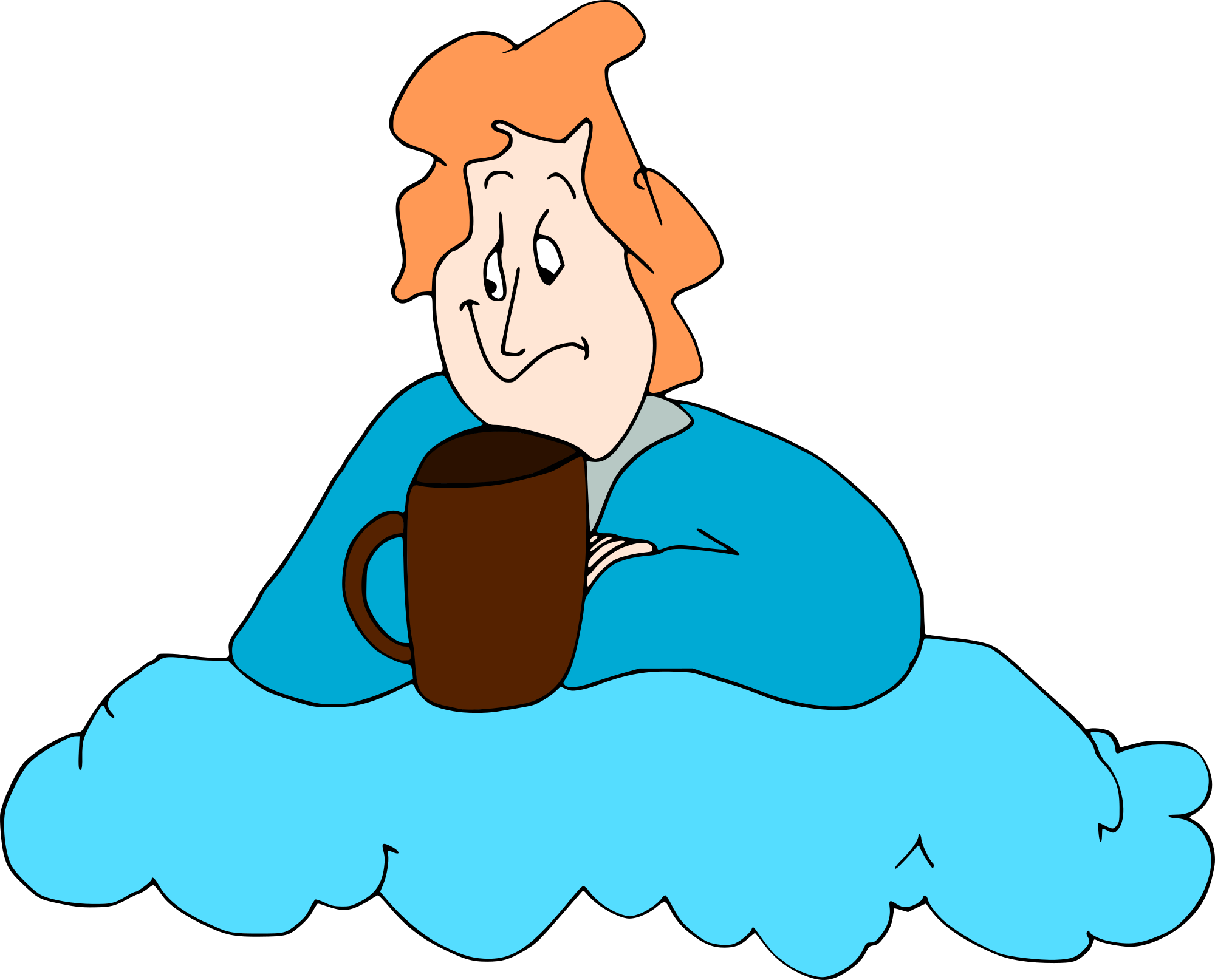 - break cartoon cloud coffee Comic characters drink hand drawn heaven hot chocolate looking down man pause relaxed sky