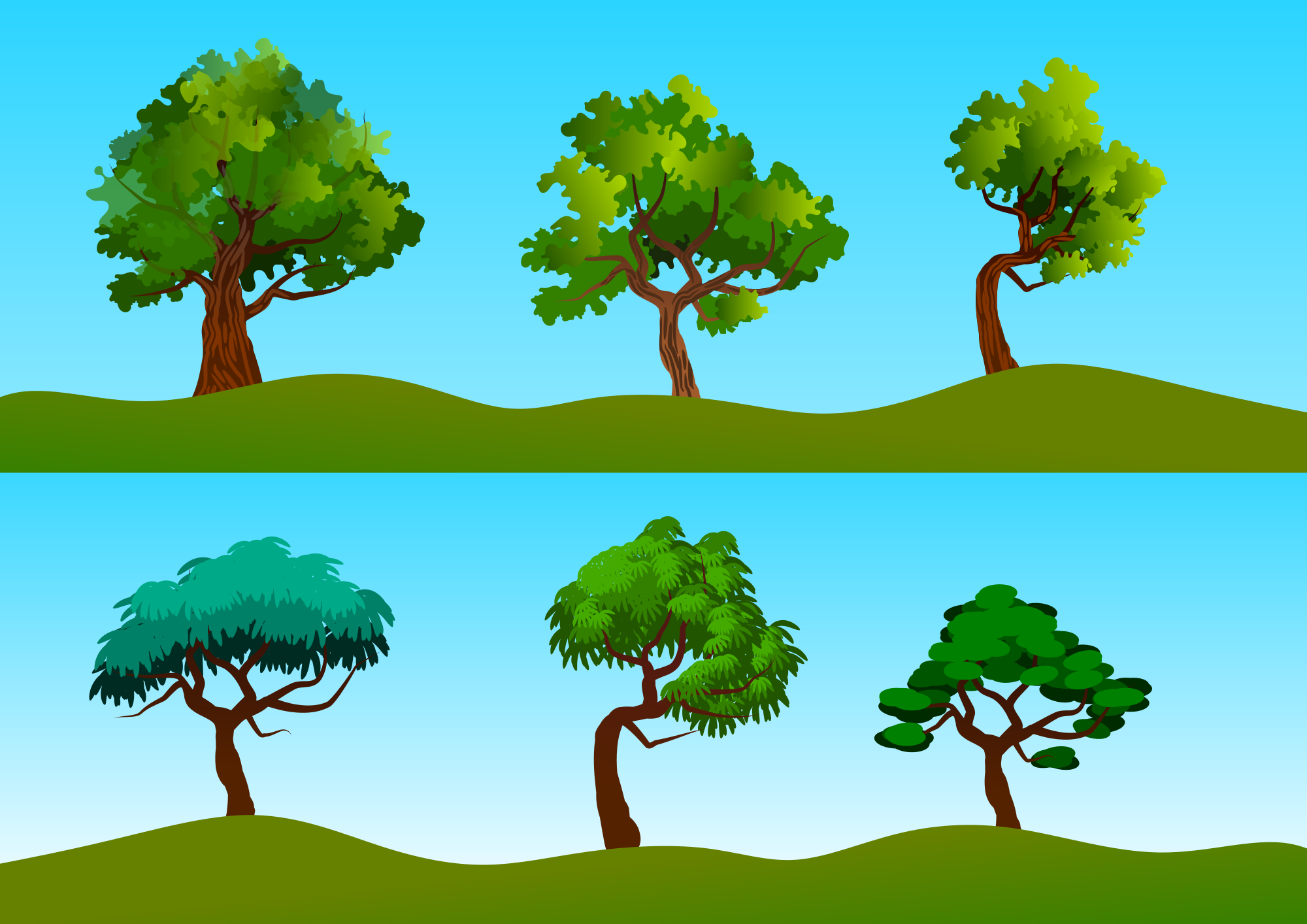 Set of stylized trees. Study.
