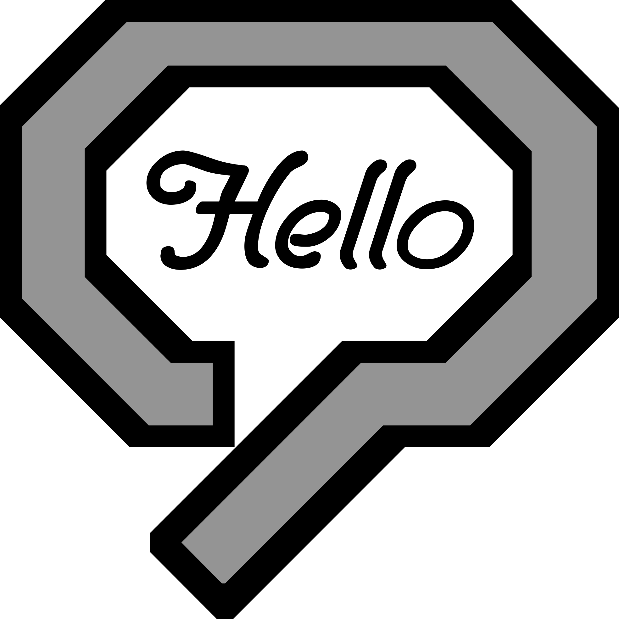 "Hello" in a abstract quote bubble. The font is PenTip, converted to paths.