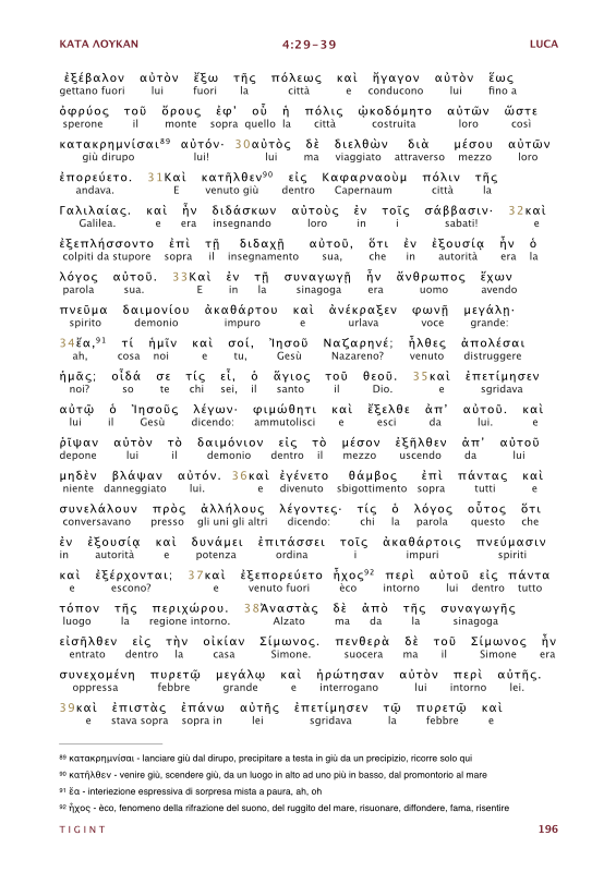 TIGINT Traduzione Interlineare Greco Italiano del Nuovo Testamento