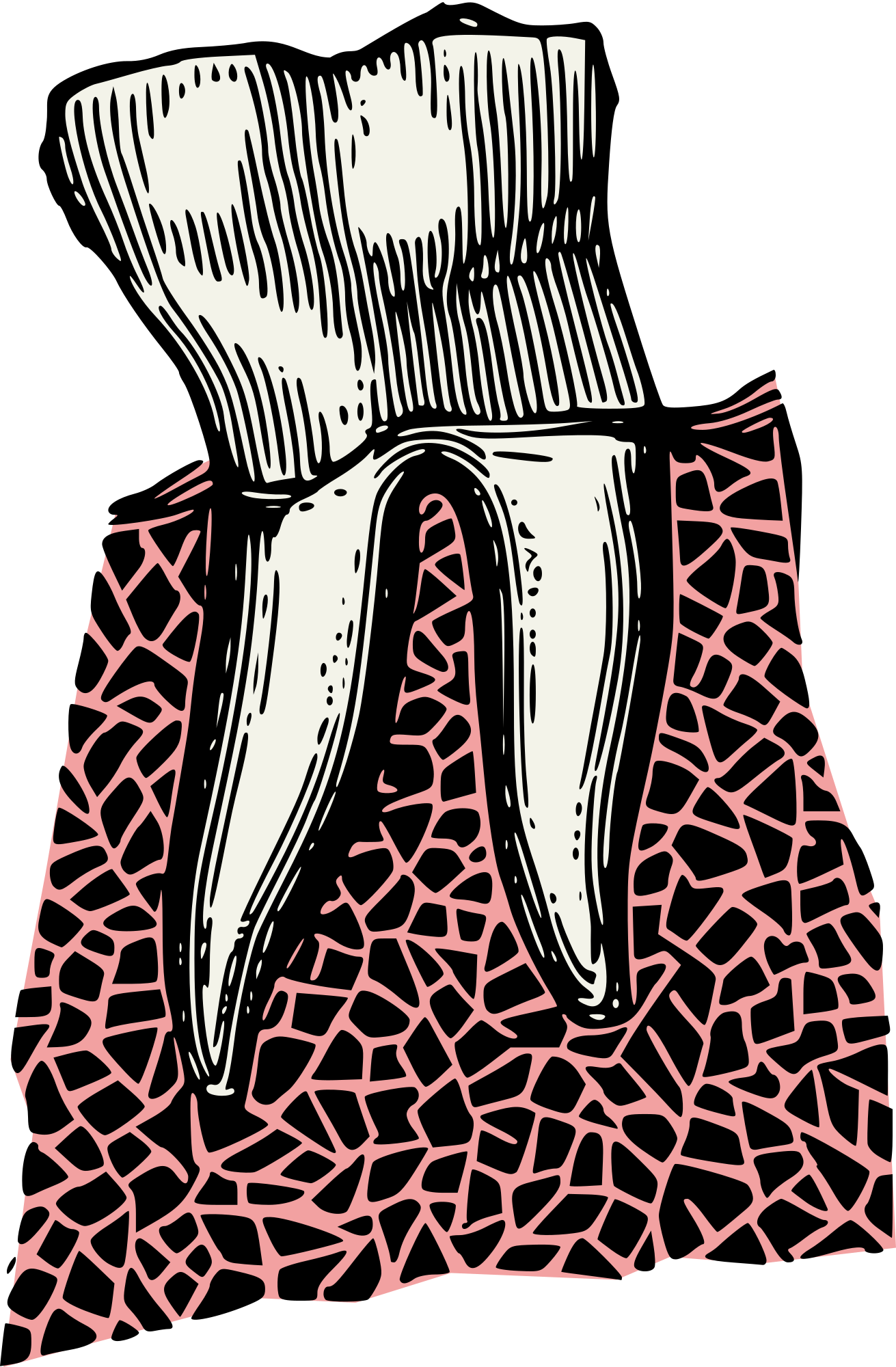 A tooth with the roots and gums