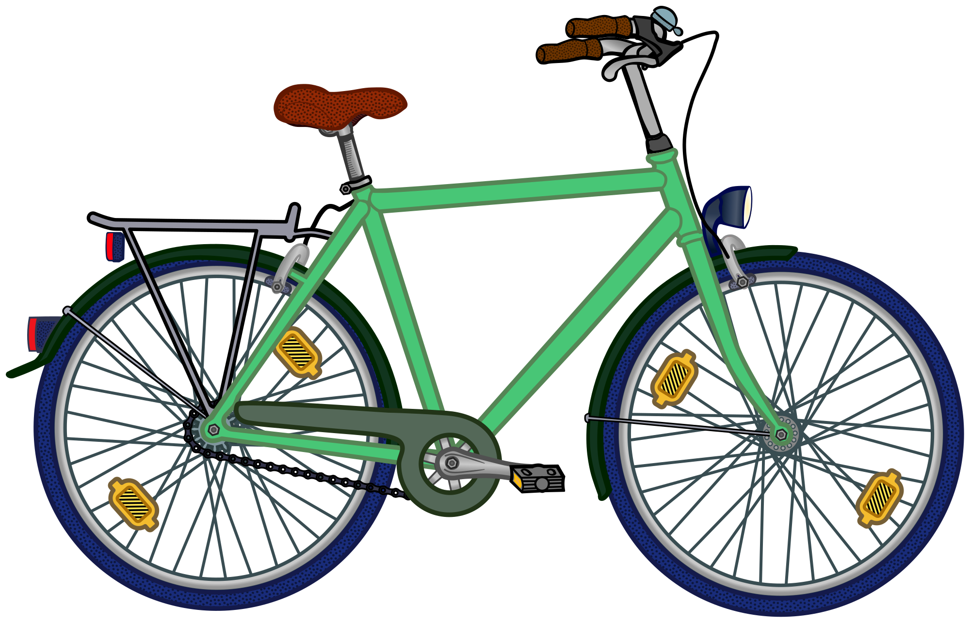 Drawn roadworthy bike for road safety education.The front front reflector is missing.