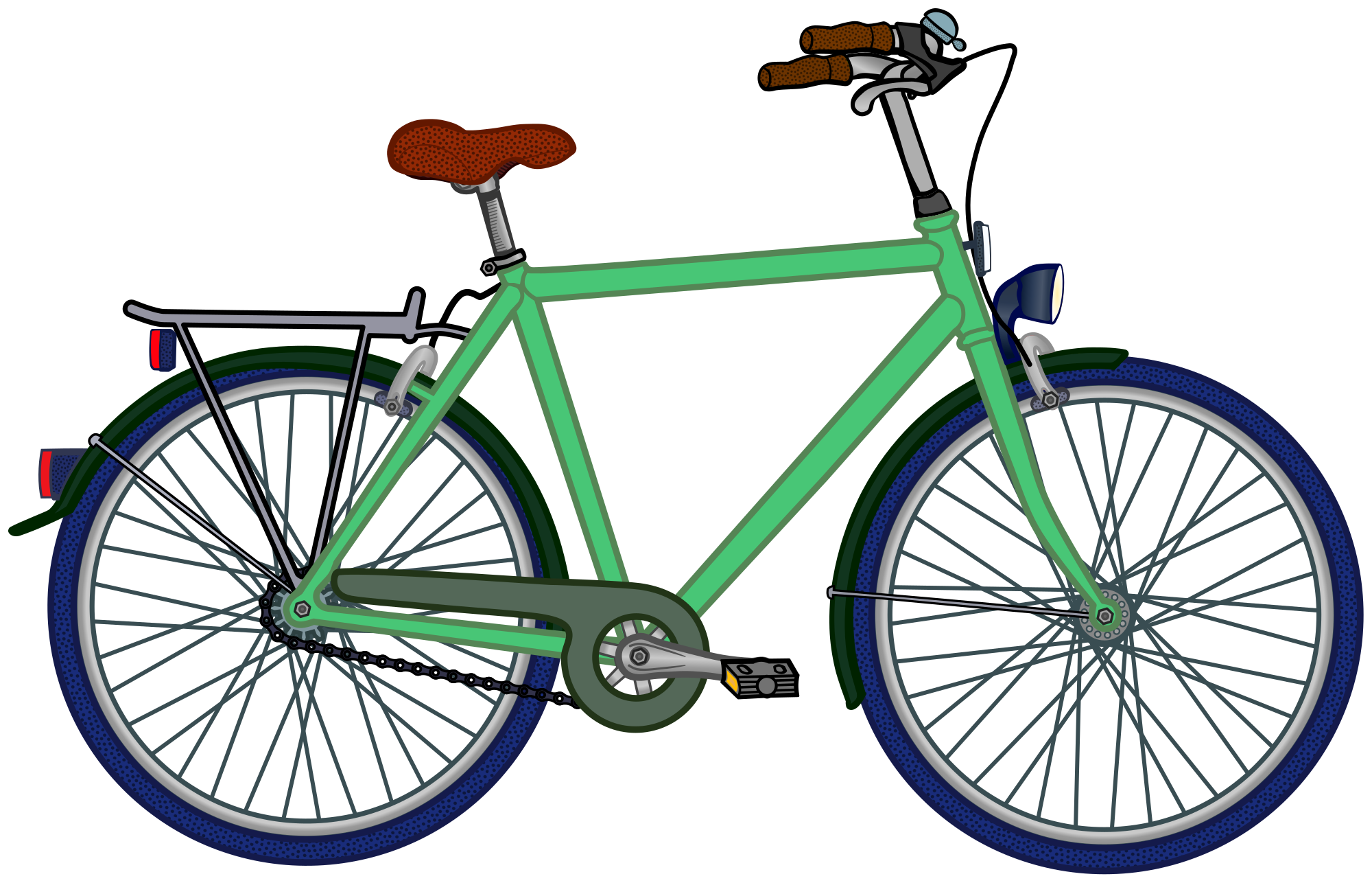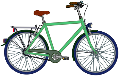 Drawn roadworthy bike for road safety education.The spoke reflector is missing.