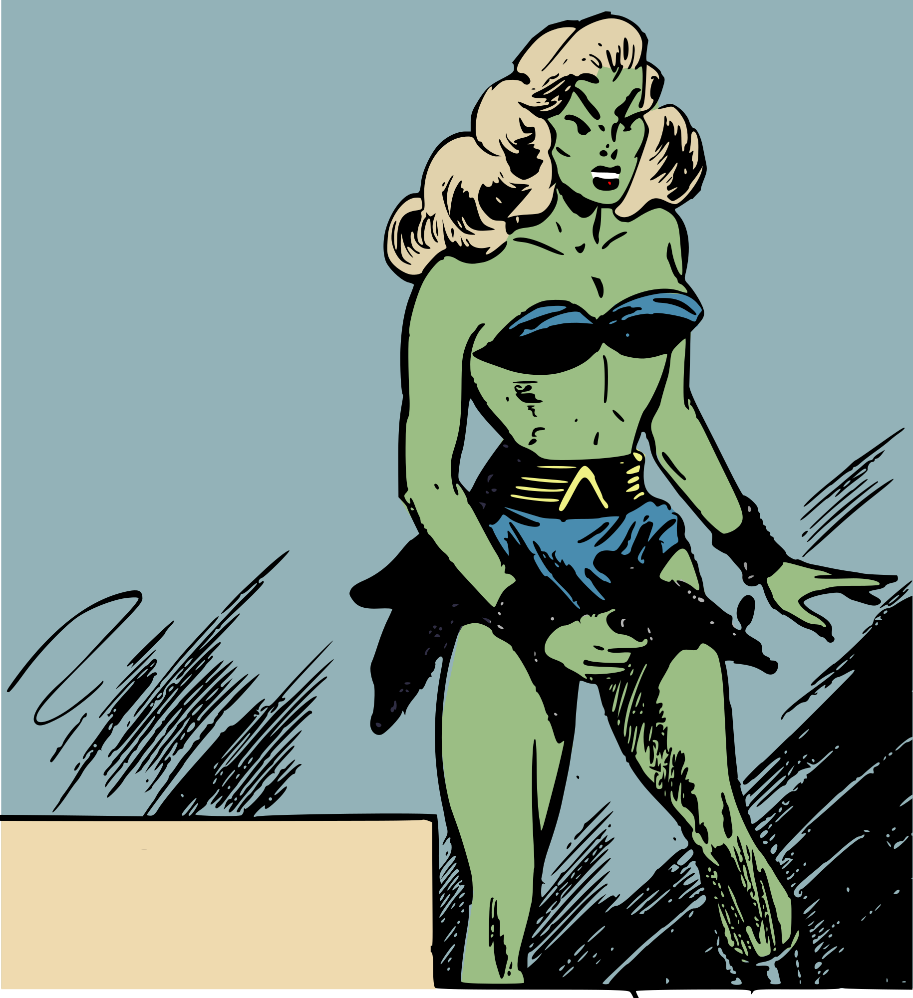 Green skinned bikini alien from https://digitalcomicmuseum.com/preview/index.php?did=688&page=10