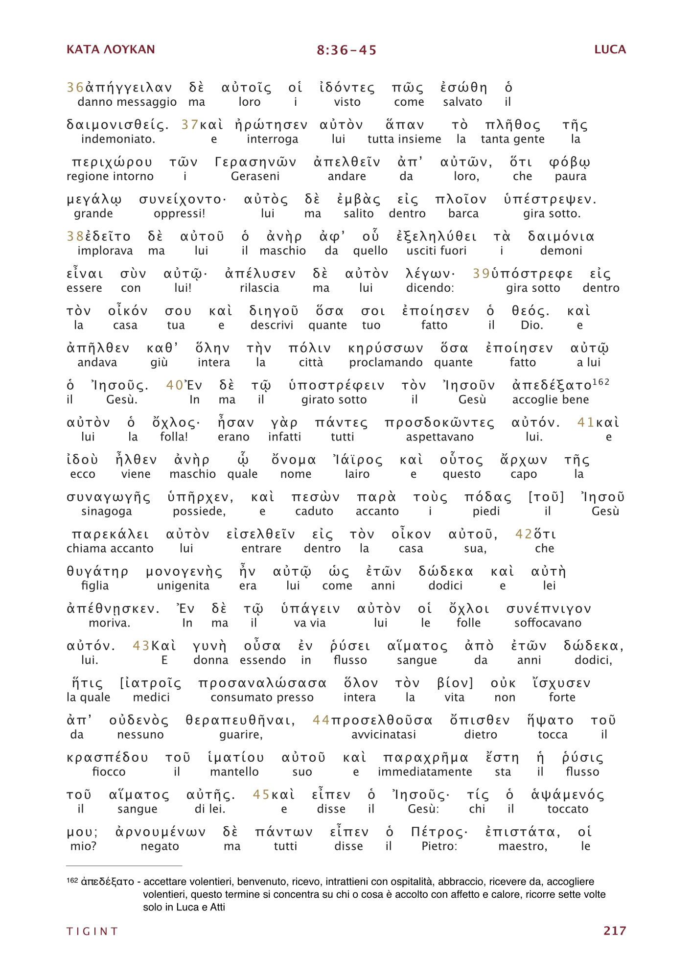 Traduzione Interlineare Greco Italiano del Nuovo Testamento