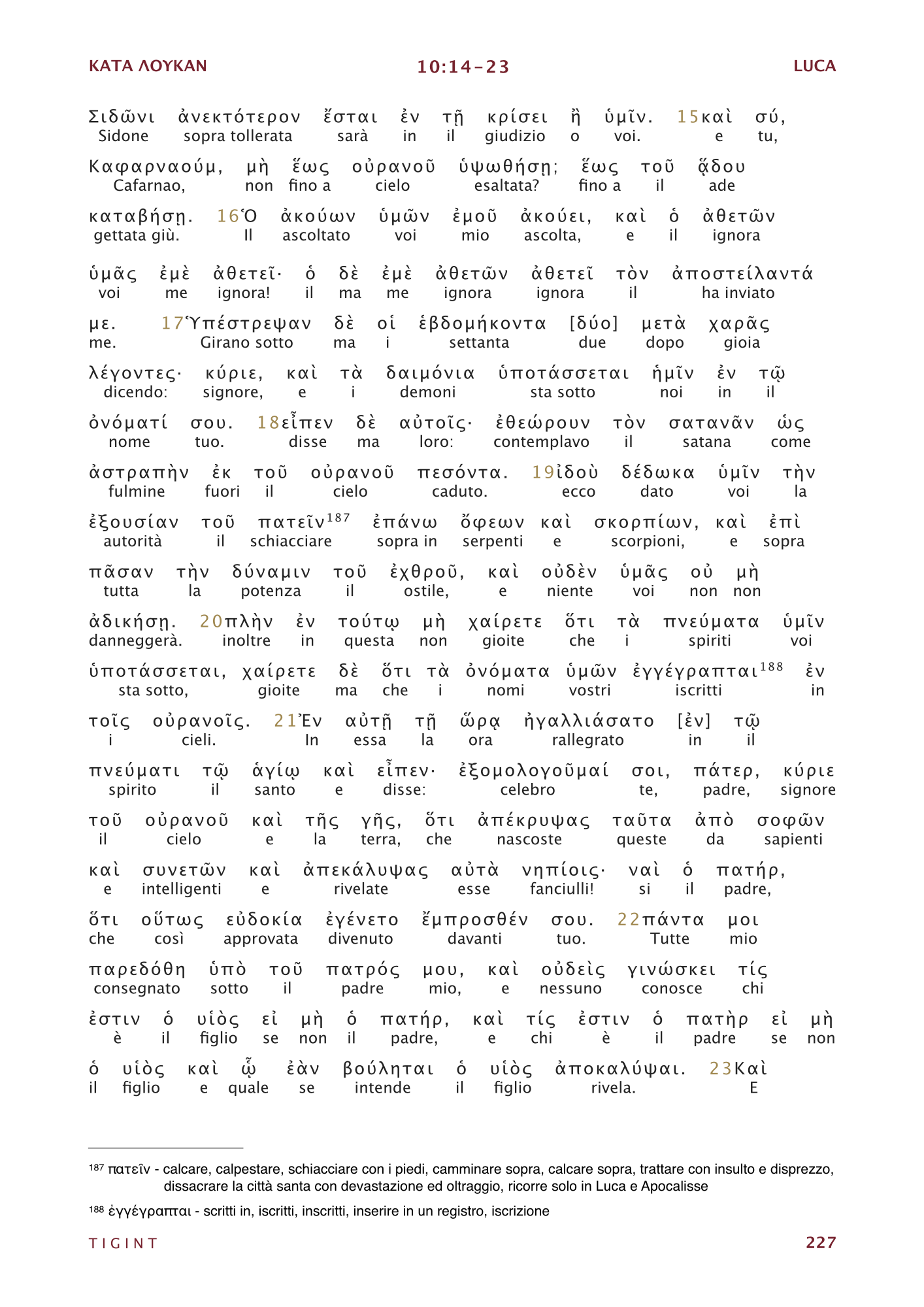 Traduzione Interlineare Greco Italiano del Nuovo Testamento