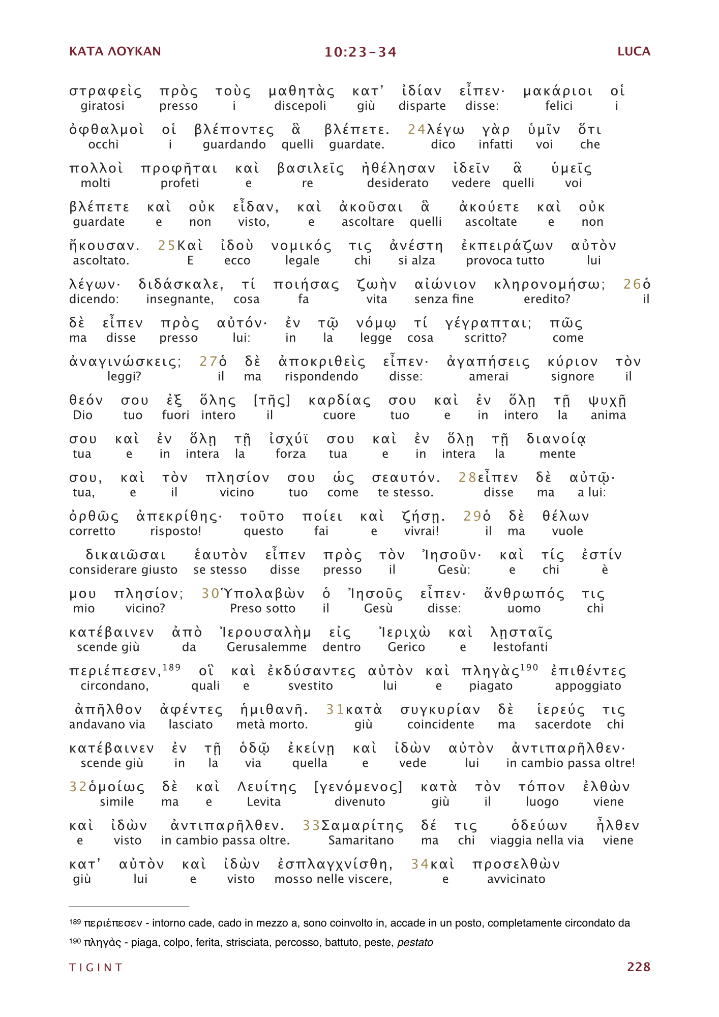 Traduzione Interlineare Greco Italiano del Nuovo Testamento