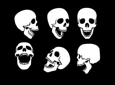 Six human skulls traced from https://www.publicdomainpictures.net/en/view-image.php?image=145360&picture=human-skulls