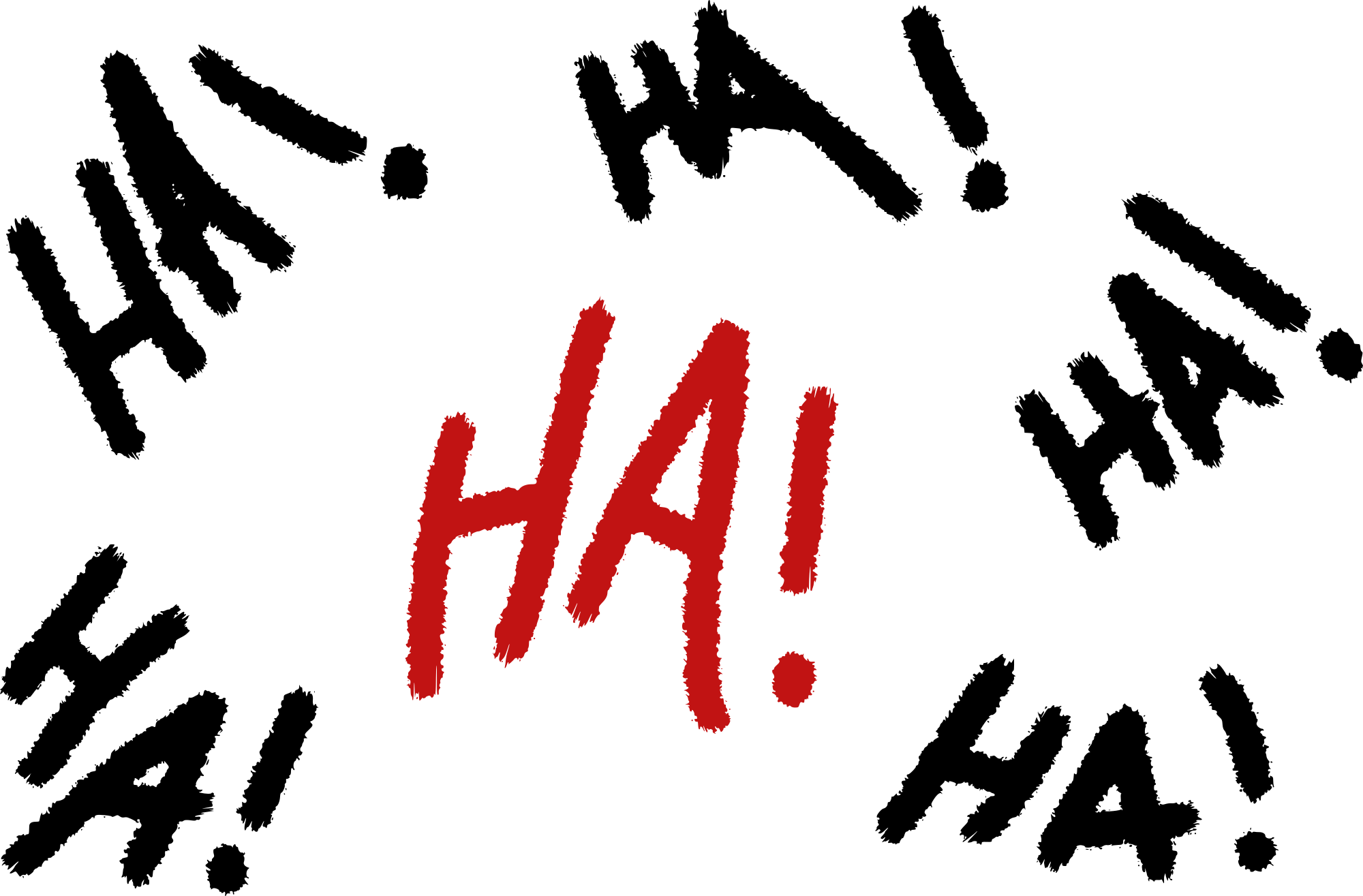 Text with Ha ha! traced from https://www.publicdomainpictures.net/en/view-image.php?image=201827&picture=ha-ha-writing