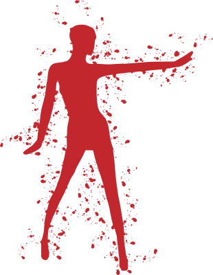 Red paint splatter silhouette of a woman.