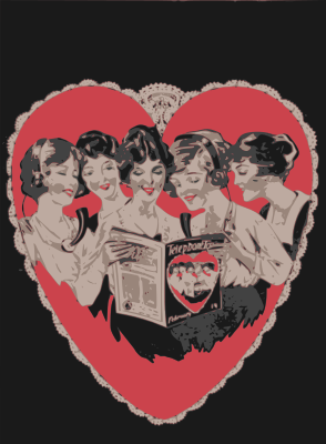 - romance Valintines Day phonebook operator phone telephone retro vintage card greeting holiday 1920s 1921 woman female women five