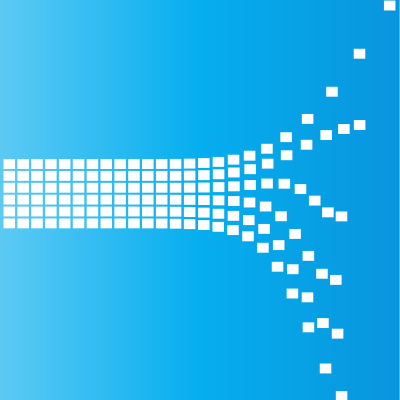 White bursting tiles on blue background.