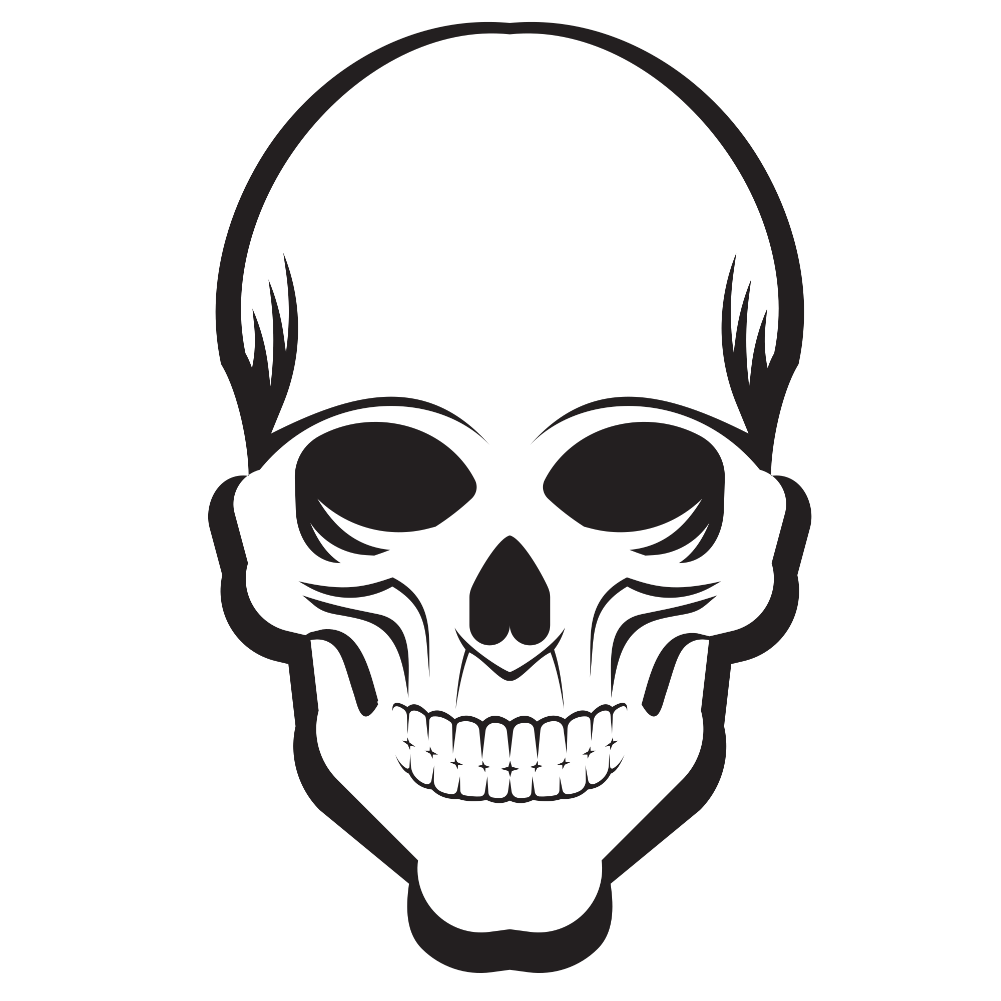 Silhouette of a smiling skull.
