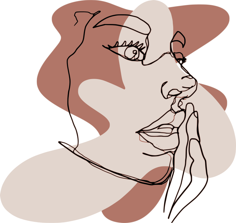 Minimal modern art line drawing of a woman touching her face
