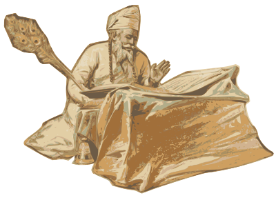 Sikh granthi reading the Guru Granth Sahib scripture in 1867