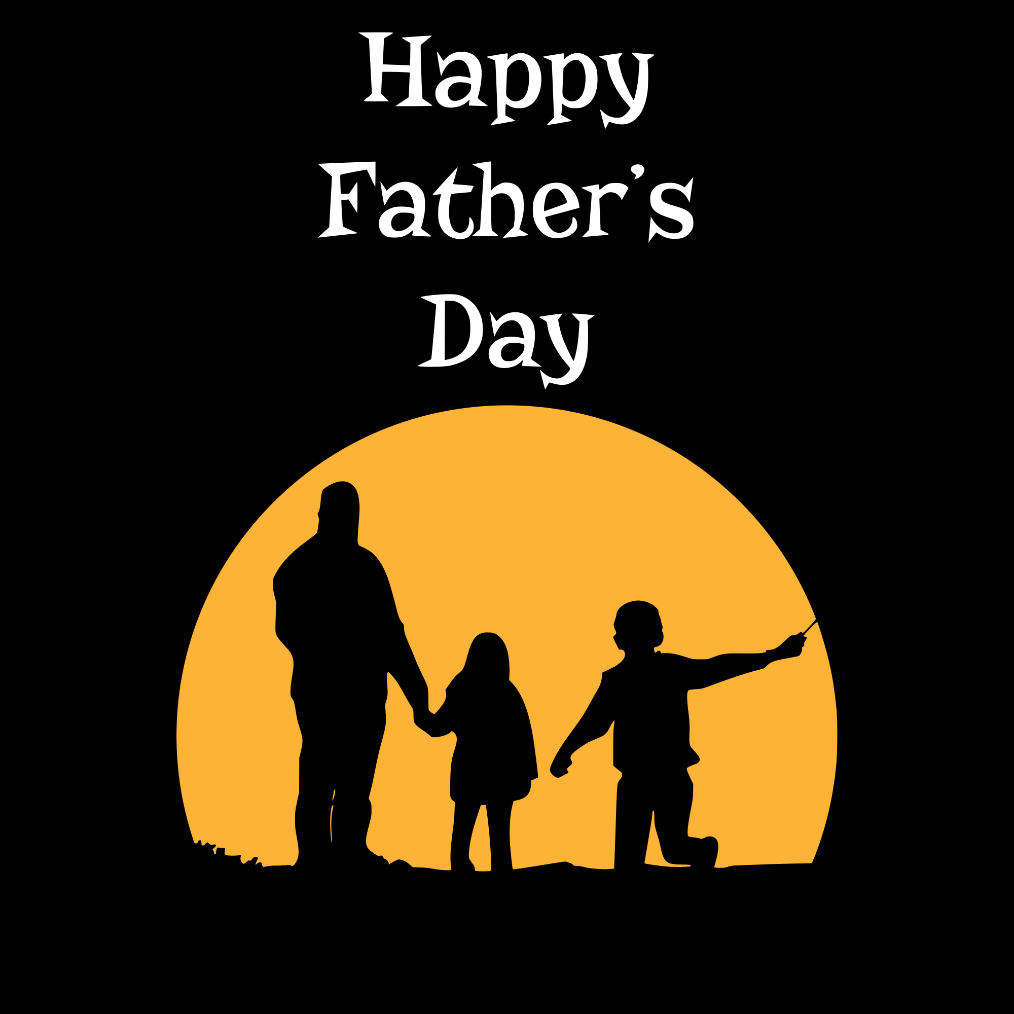 Father son and daughter sun silhouette holding hands with happy fathers day typography card template.