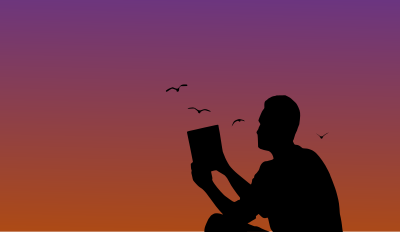Man reading a book in sunset