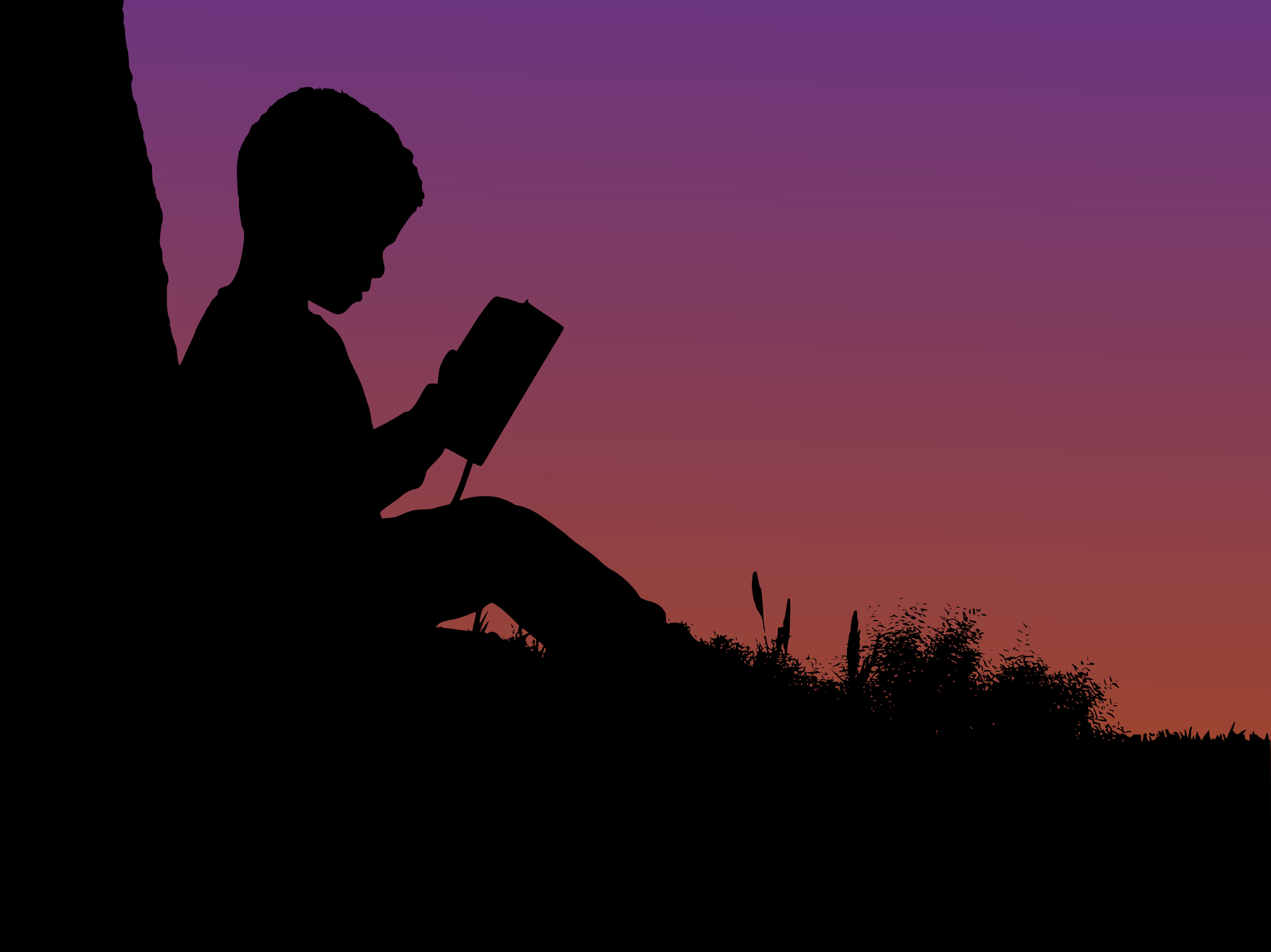 Boy reading in sunset traced from https://www.publicdomainpictures.net/en/view-image.php?image=272194&picture=sunset-silhouette-boy-book