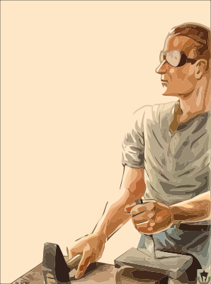 Man in goggles working.