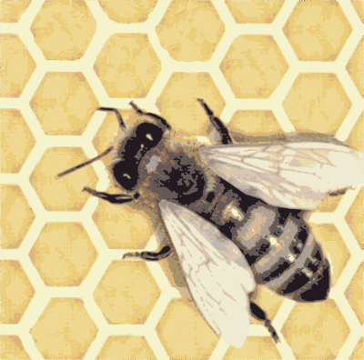 honeybee on honey comb (based on a public domain Romanian stamp)