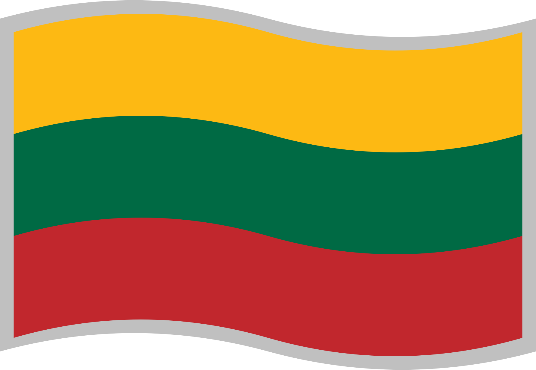 Flag of the Lithuania; slightly curved to suggest waving in the wind; with a grey border for use on a background similar to one of the flag's colours