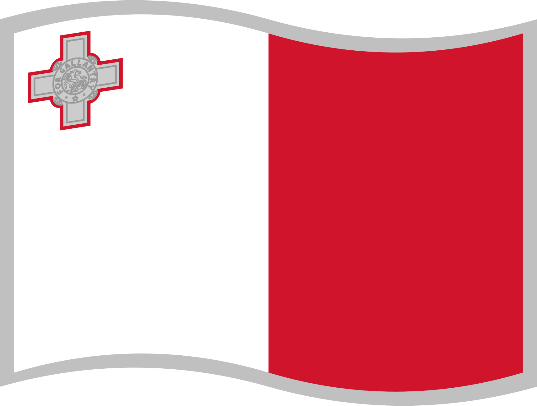 Flag of Malta; slightly curved to suggest waving in the wind; with a grey border for use on a background similar to one of the flag's colours