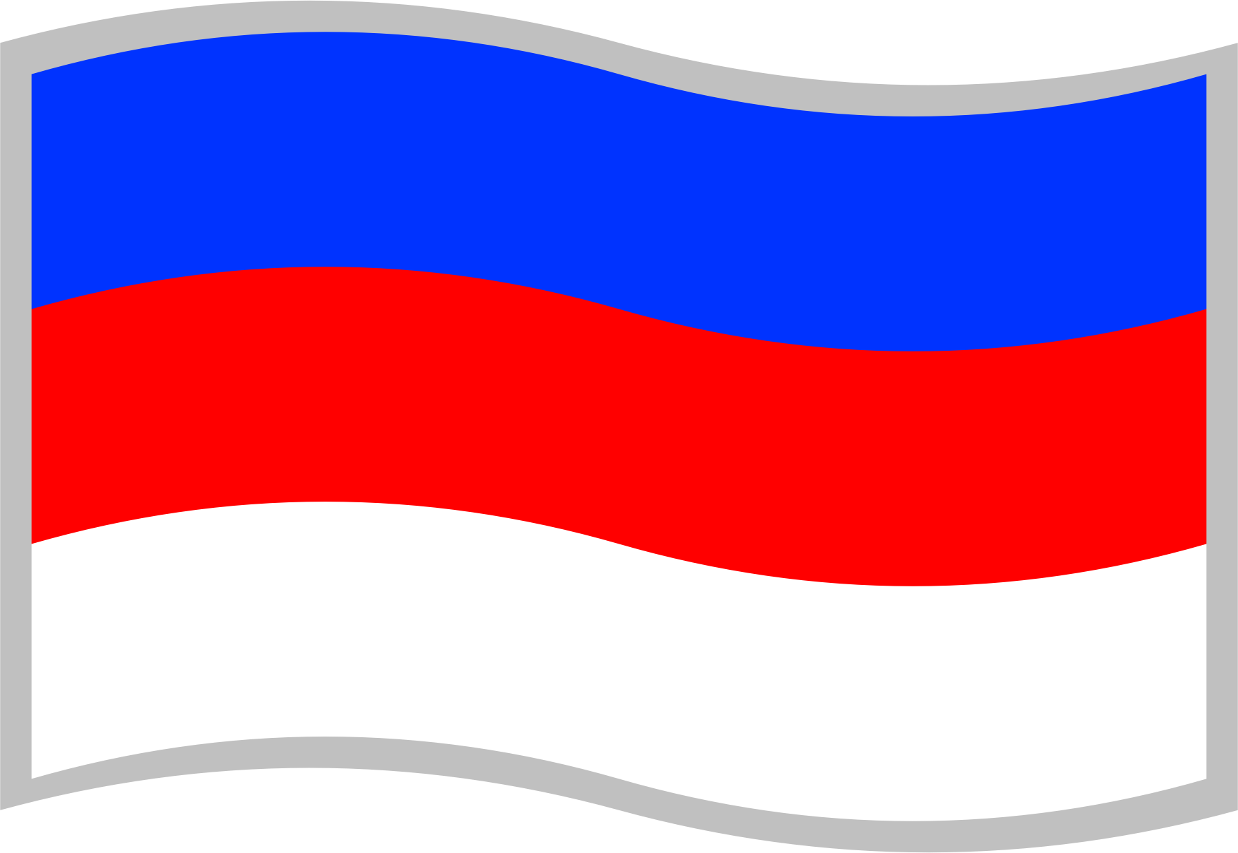 Flag of the Sorbs; slightly curved to suggest waving in the wind; with a grey border for use on a background similar to one of the flag's colours