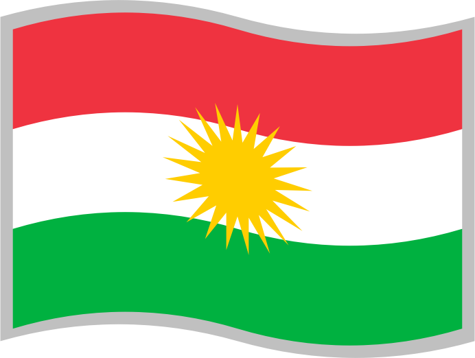 Flag of Kurdistan; slightly curved to suggest waving in the wind; with a grey border for use on a background similar to one of the flag's colours