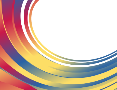 White background with colourful curved stripes.
