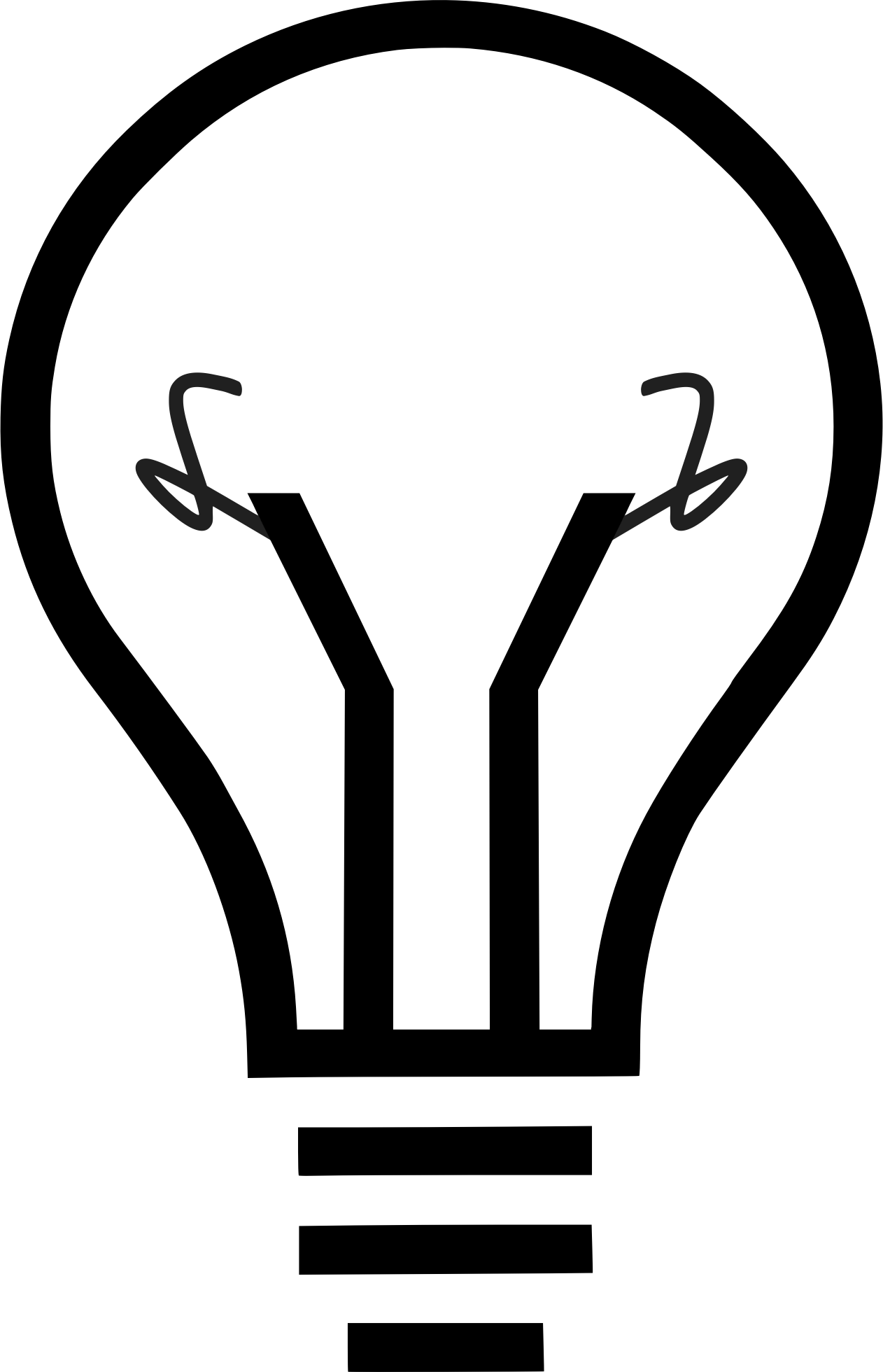 The lightbulb graphic has been broken up into individual components. The Bulb, socket/base, filament leads and filament. The middle of the filament is removed so you can add your own text or graphic. Although the lightbulb has been broken in to individual parts, you might need to use the 'ungroup' function of your SVG editor after loading.