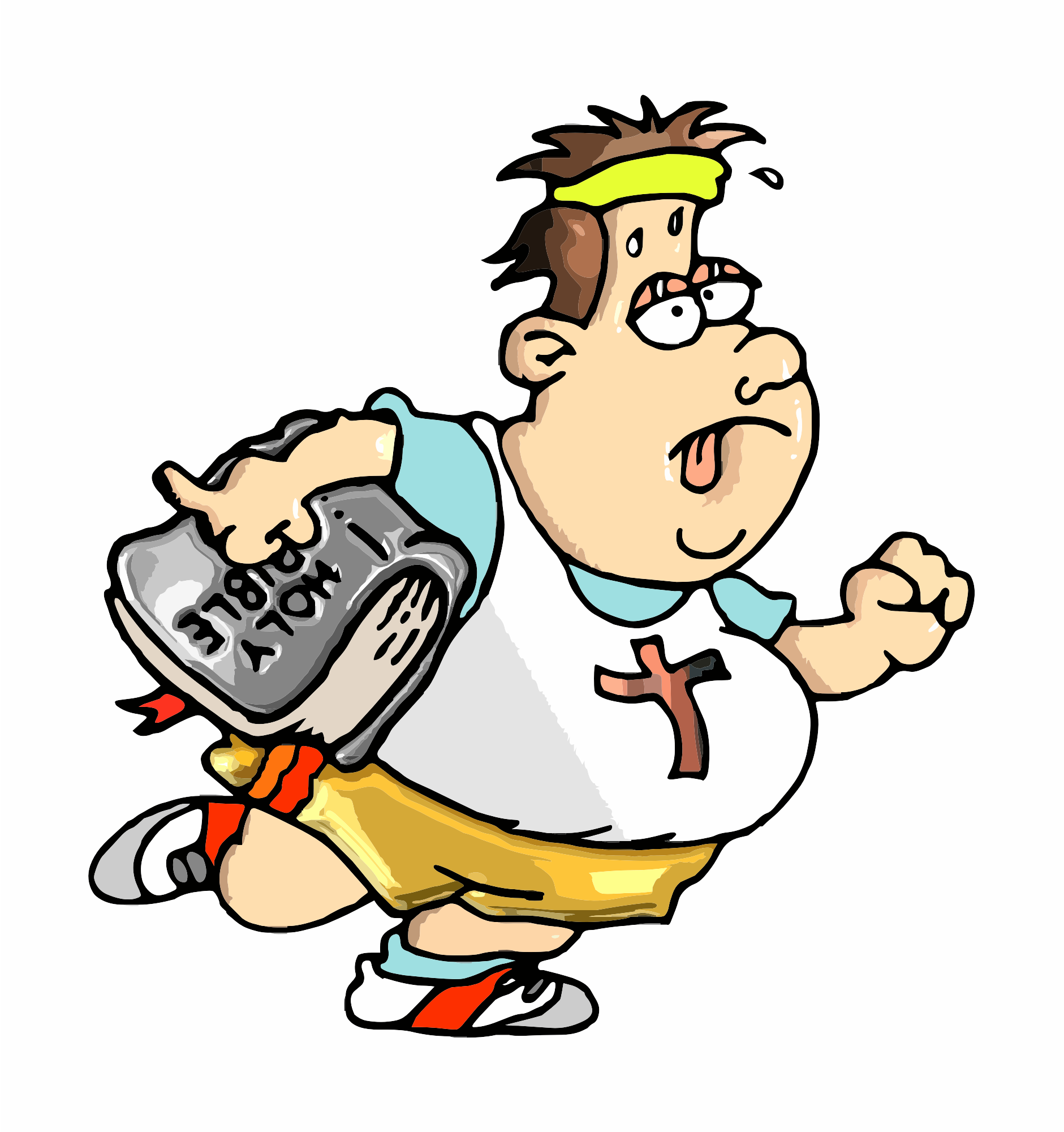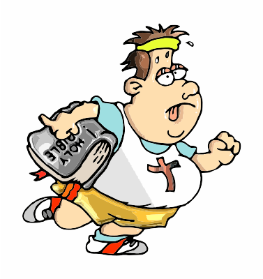 An over weight christian runner with a bible