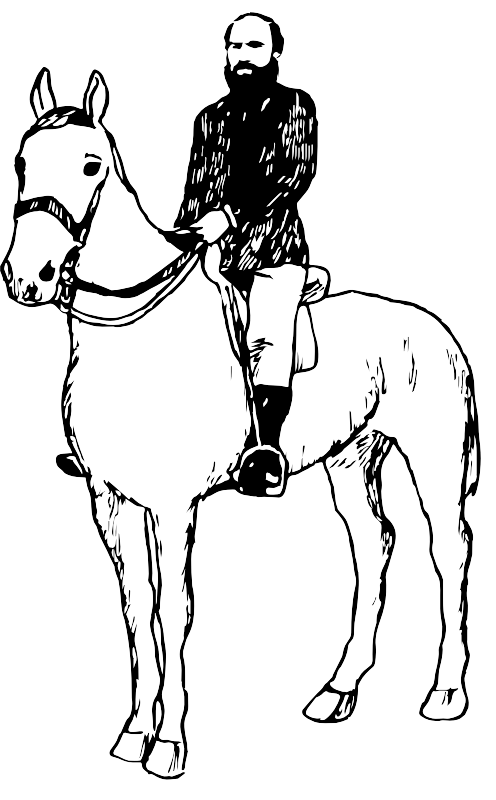 Black and white pic of man on a horse