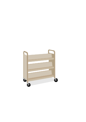 Empty plain beige library bookcart with wheels slightly angled.