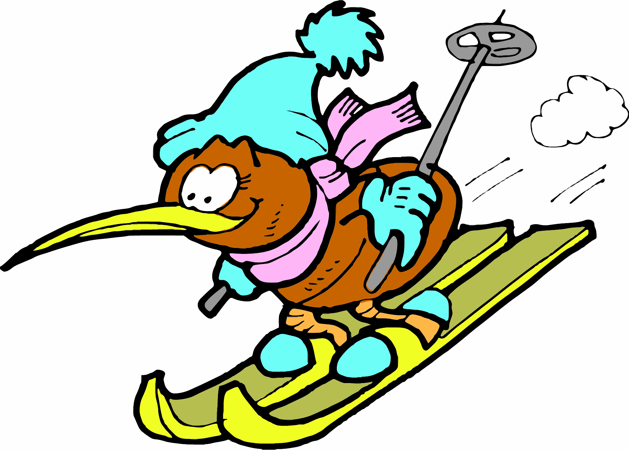 A Kiwi Bird skiing