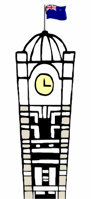 - clock tower flag New Plymouth New Zealand