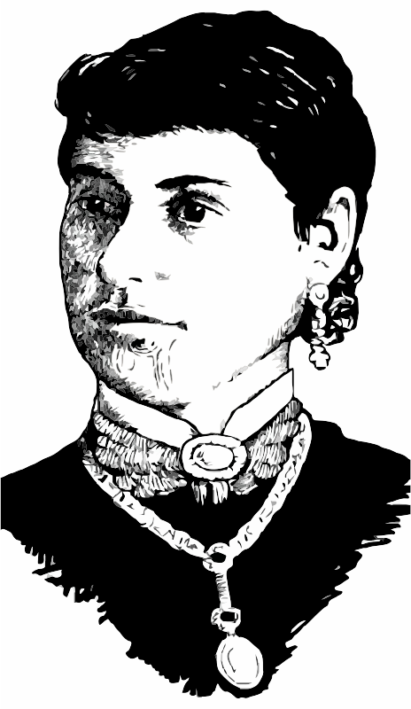 A gray scale drawing of a Maori woman (Wahine) with a moko on her face