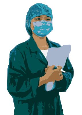 This woman is in hospital scrubs. (Based on a US Government public domain photogaph)