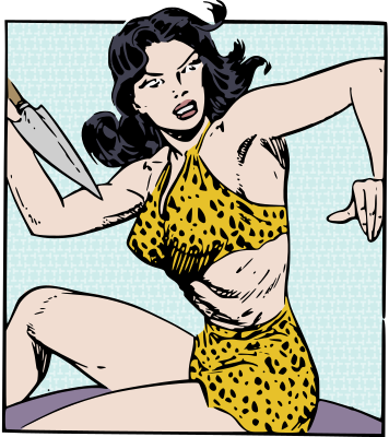 - remix+321438 remix+322193 jungle+girl leopard+print spear comic girl female lady woman jungle fight colour color bikini
