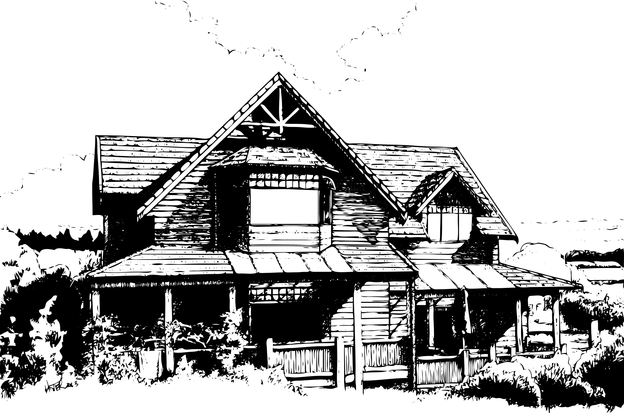 - wooden House line drawing b-w