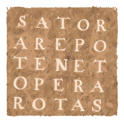 Sator Square (also called a Rotas Square) is basically a classic word square containing a five-word Latin palindrome. Sometimes associated with magic and other things, its very old. This is based on a depiction in an old public domain book.
