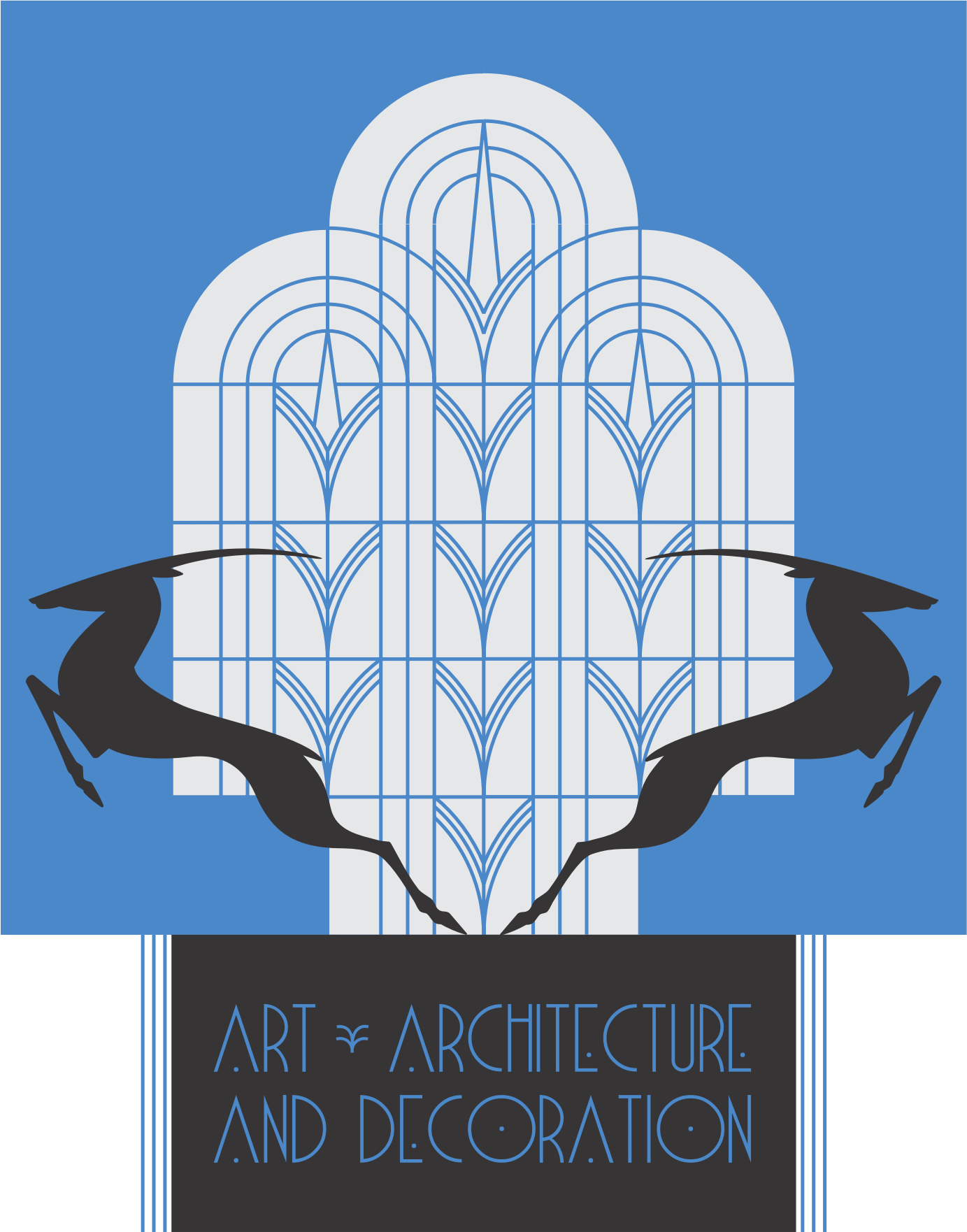 - Art Deco geometric stylized antelope leaping jumping lines vintage retro twenties thirties