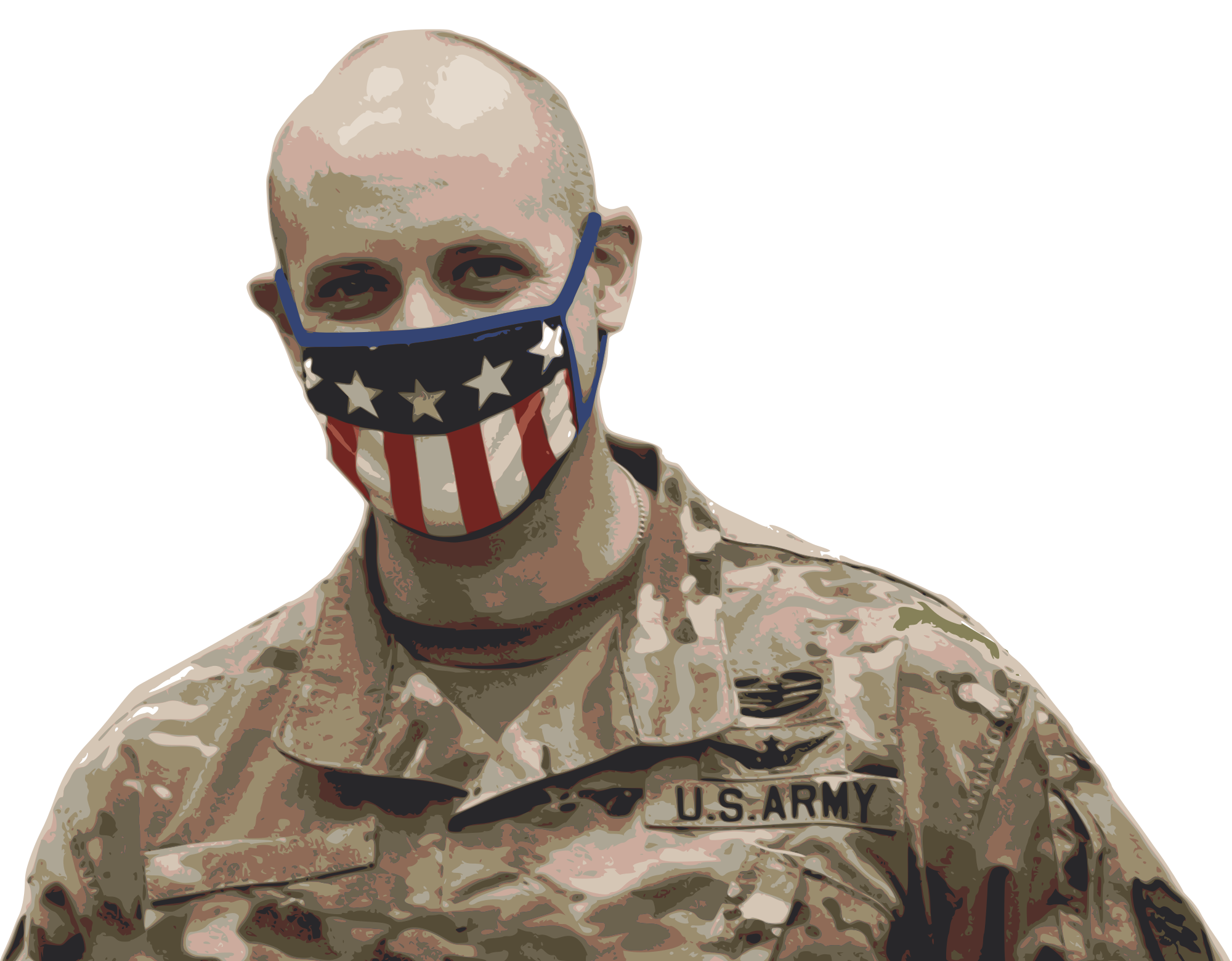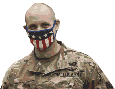 - solider Army US America American patriot flag face+mask medical+mask mask man male head face battle USA bald